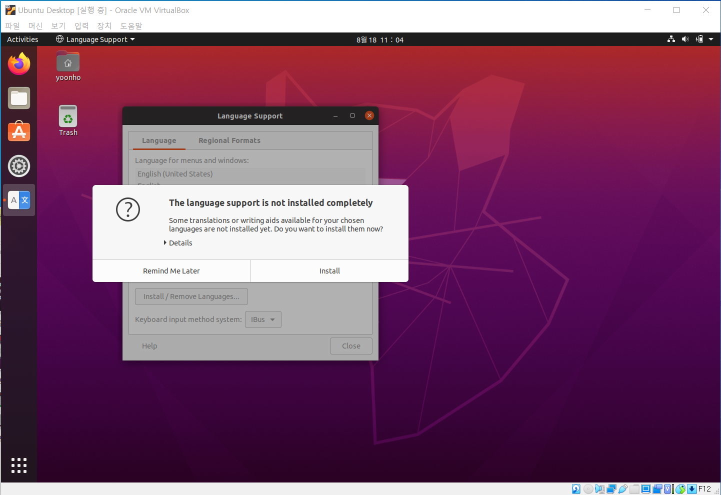 Language Support 애플리케이션을 실행하고, Install을 클릭한다.