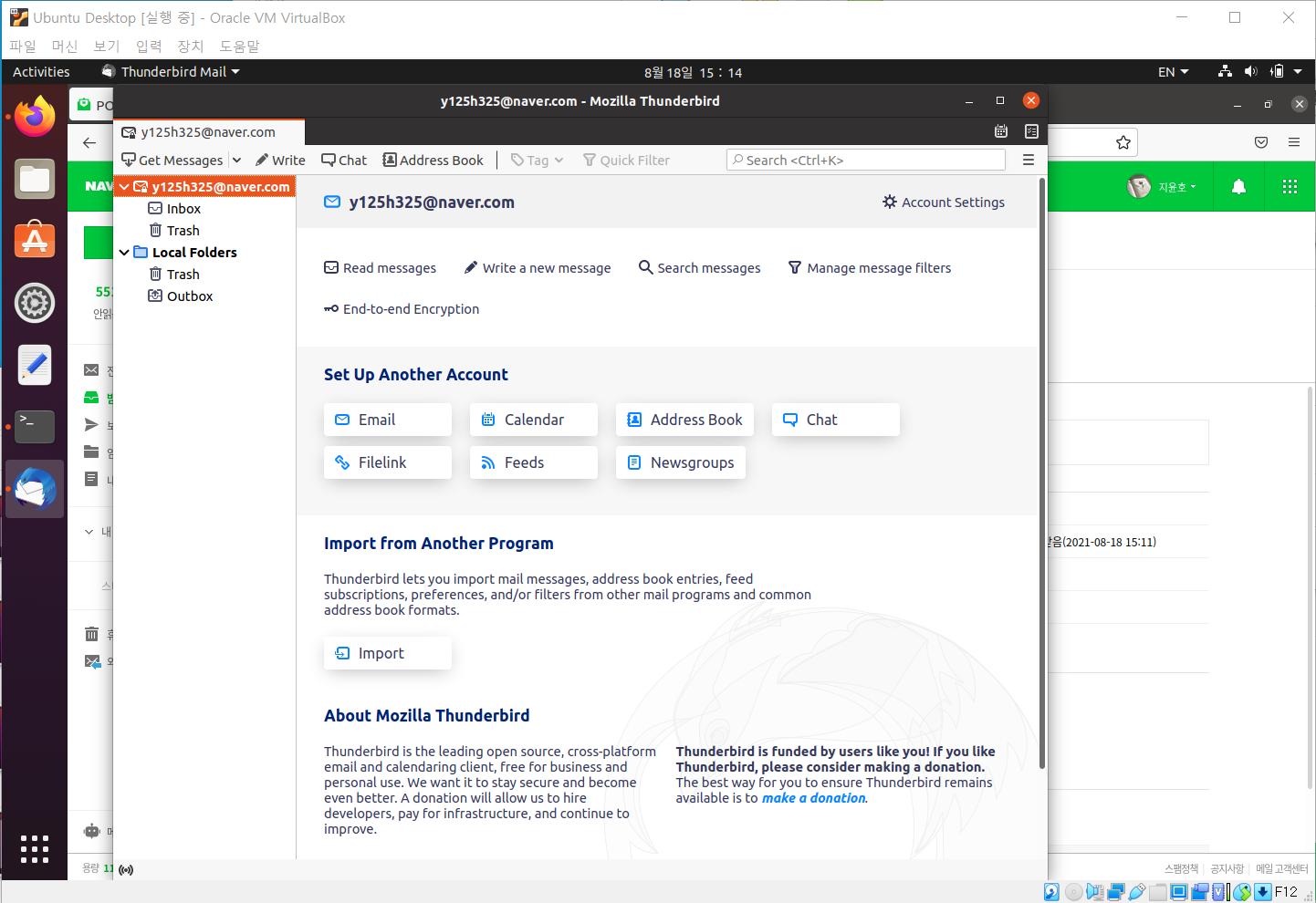 Thunderbird Mail을 실행해서 이름, 네이버 메일 주소, 메일 비밀번호를 입력하고 Continue 클릭.