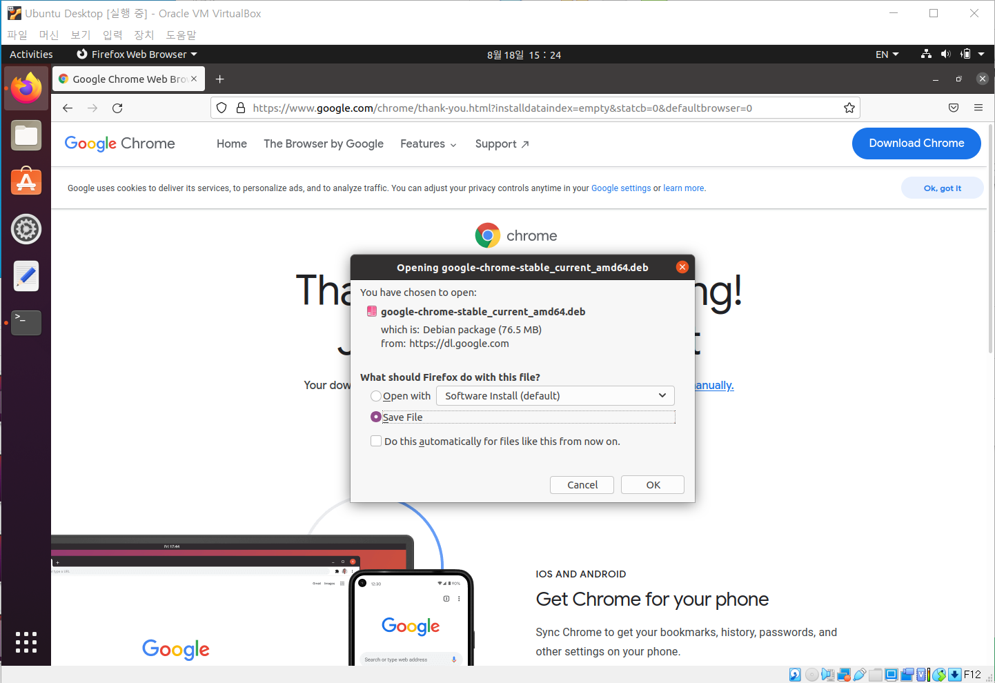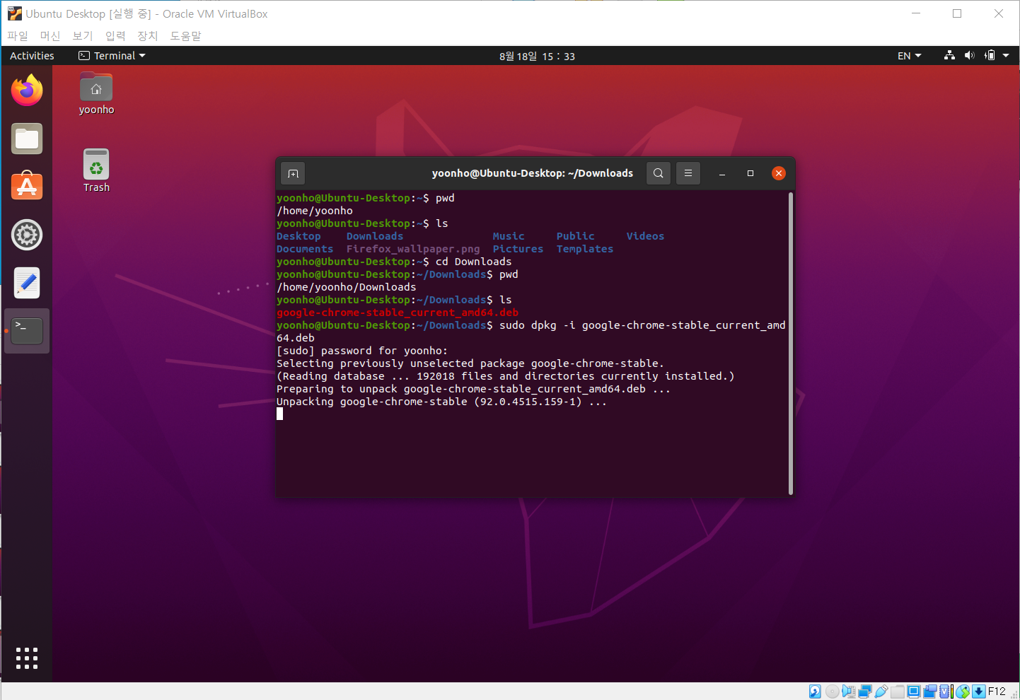 $ sudo dpkg -i google 까지 입력하고 Tab키로 나머지 완성