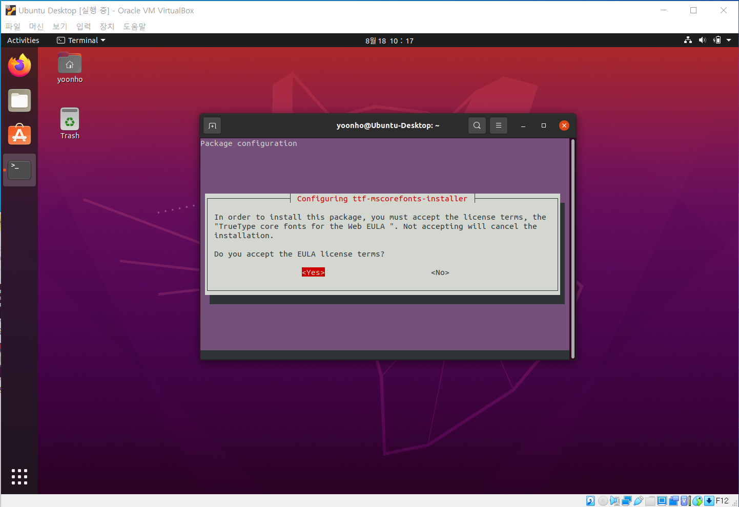 기본으로 커서가 No에 위치해 있다. Tab 또는 방향키로 Yes에 올린 후 Enter.