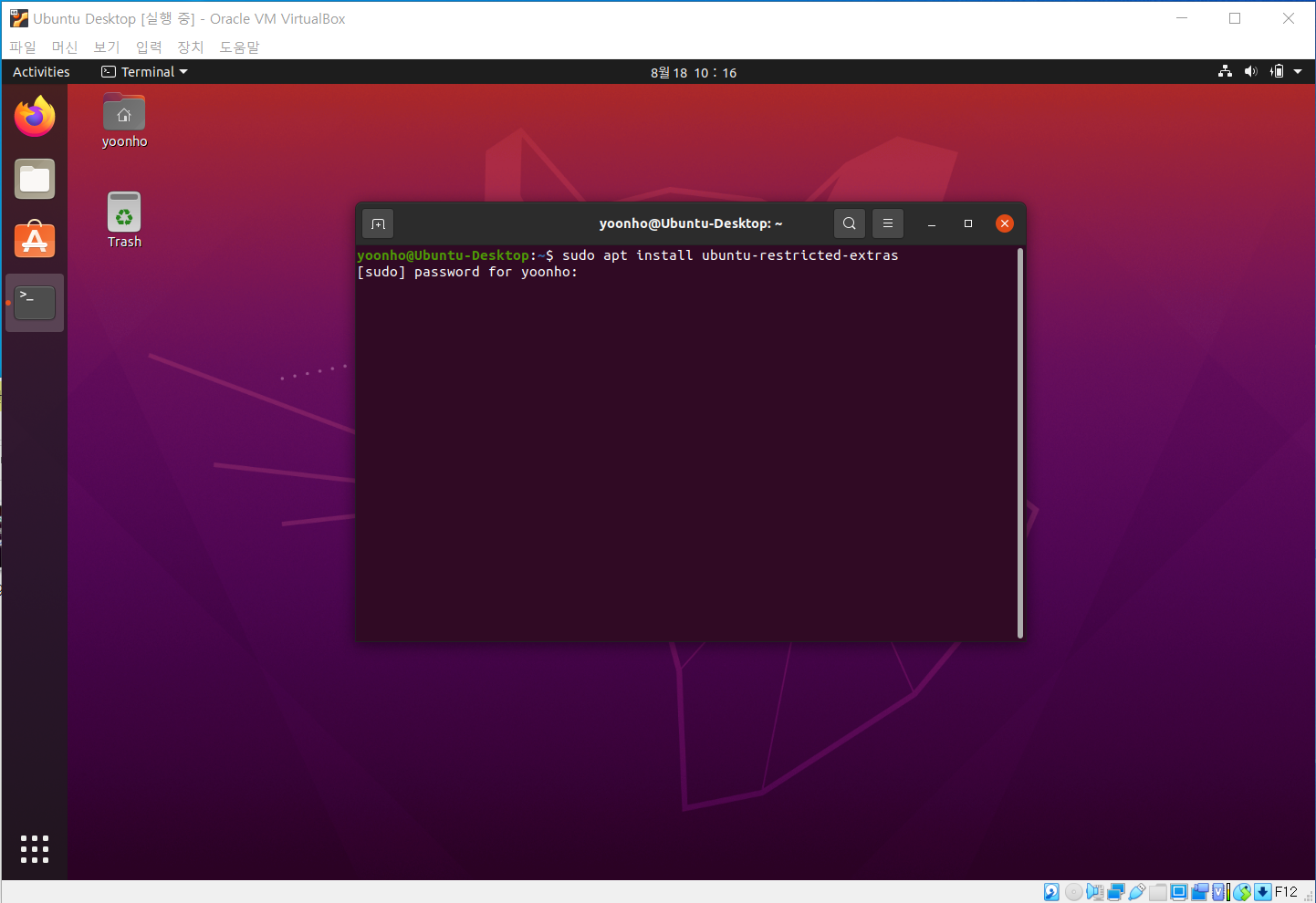 "sudo apt install ubuntu-restricted-extras"라는 명령어를 입력해준다.
