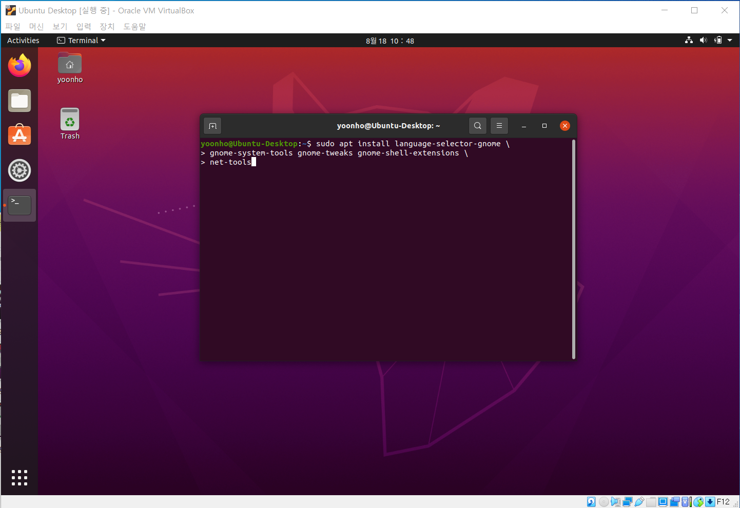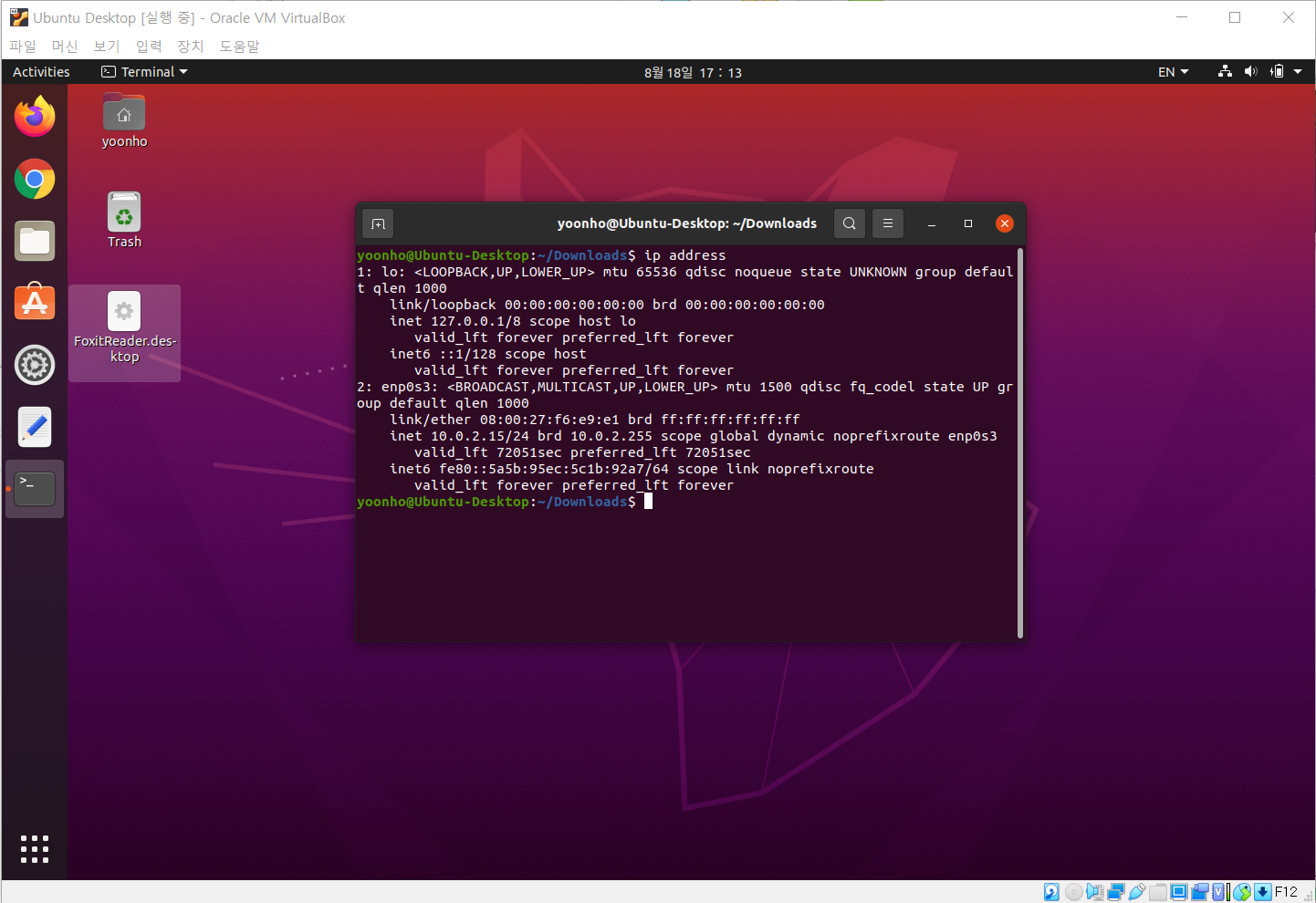 | 210820 - NAT Network와 포트 포워딩, GuestOS 간 통신 / SSH(Secure Shell) Server 연결 / Ubuntu Server 설치 / Shell과 BASH에 관한 개념 (0) | 2021.08.20 |