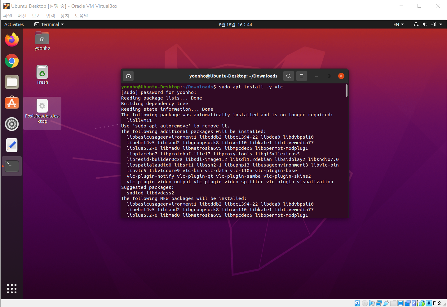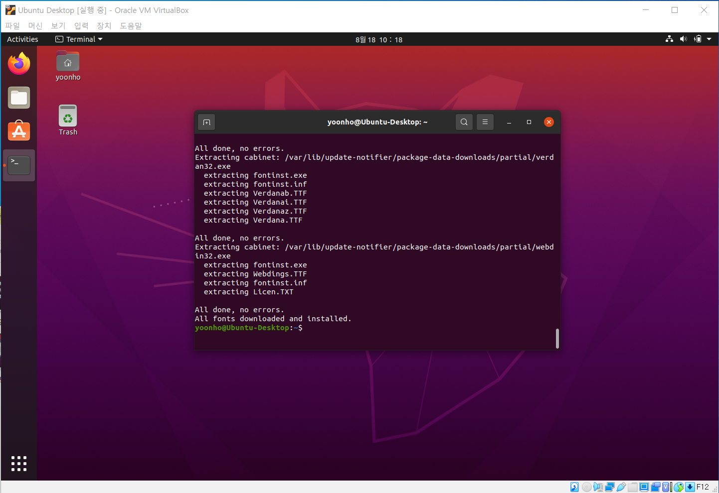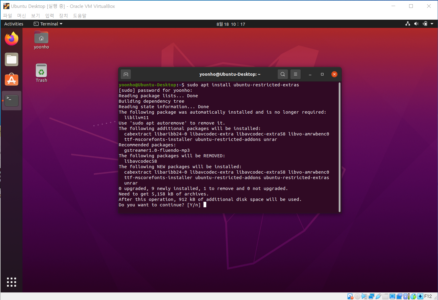 Ubuntu Restricted Extras 다운로드가 완료되었다.