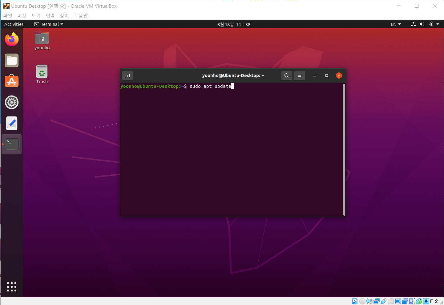패키지를 설치하기 전에 반드시 $ sudo apt update를 해주어야 한다(Update cache).