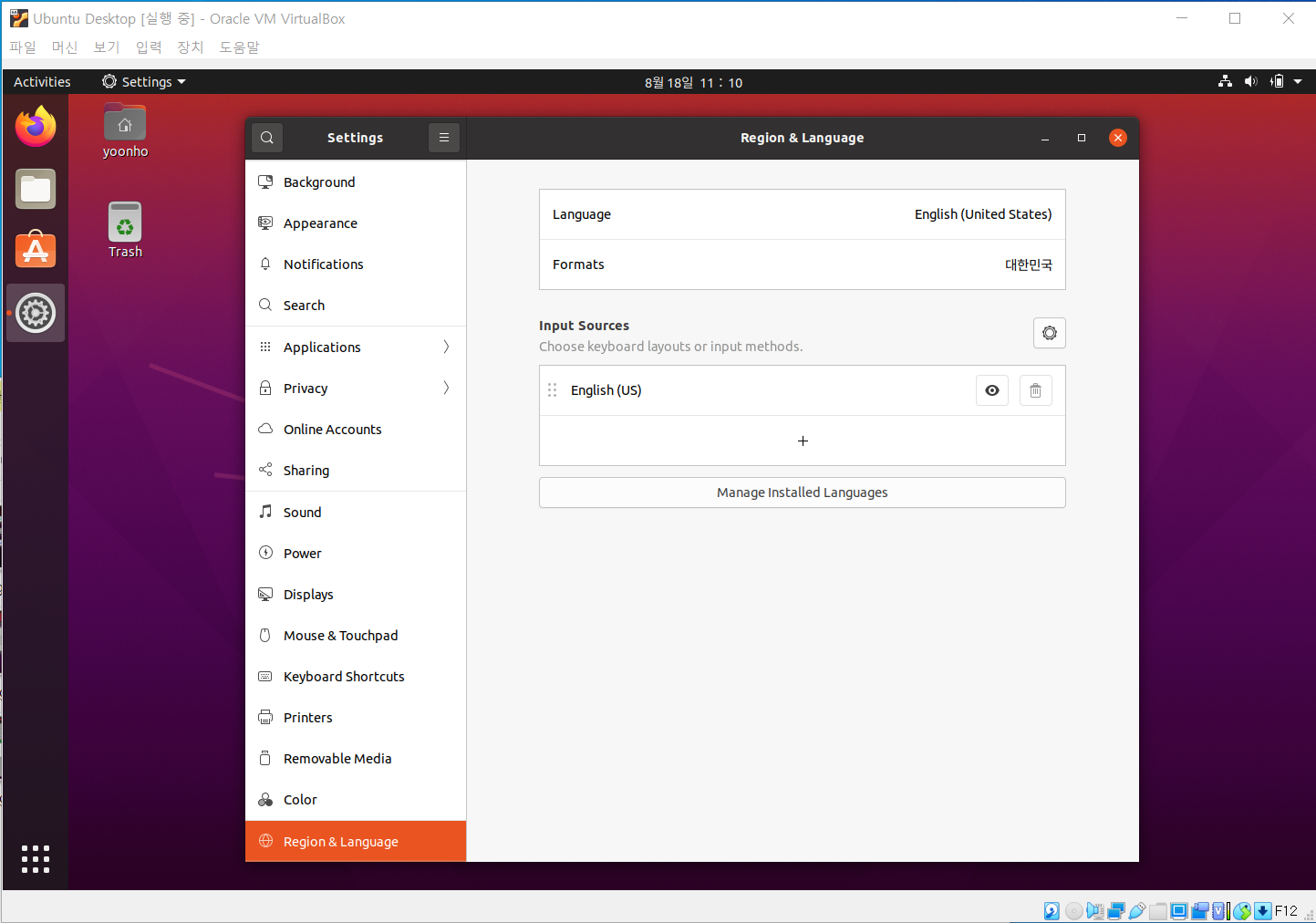 검색창에 Region & Language를 검색하여 설정에 들어간다.