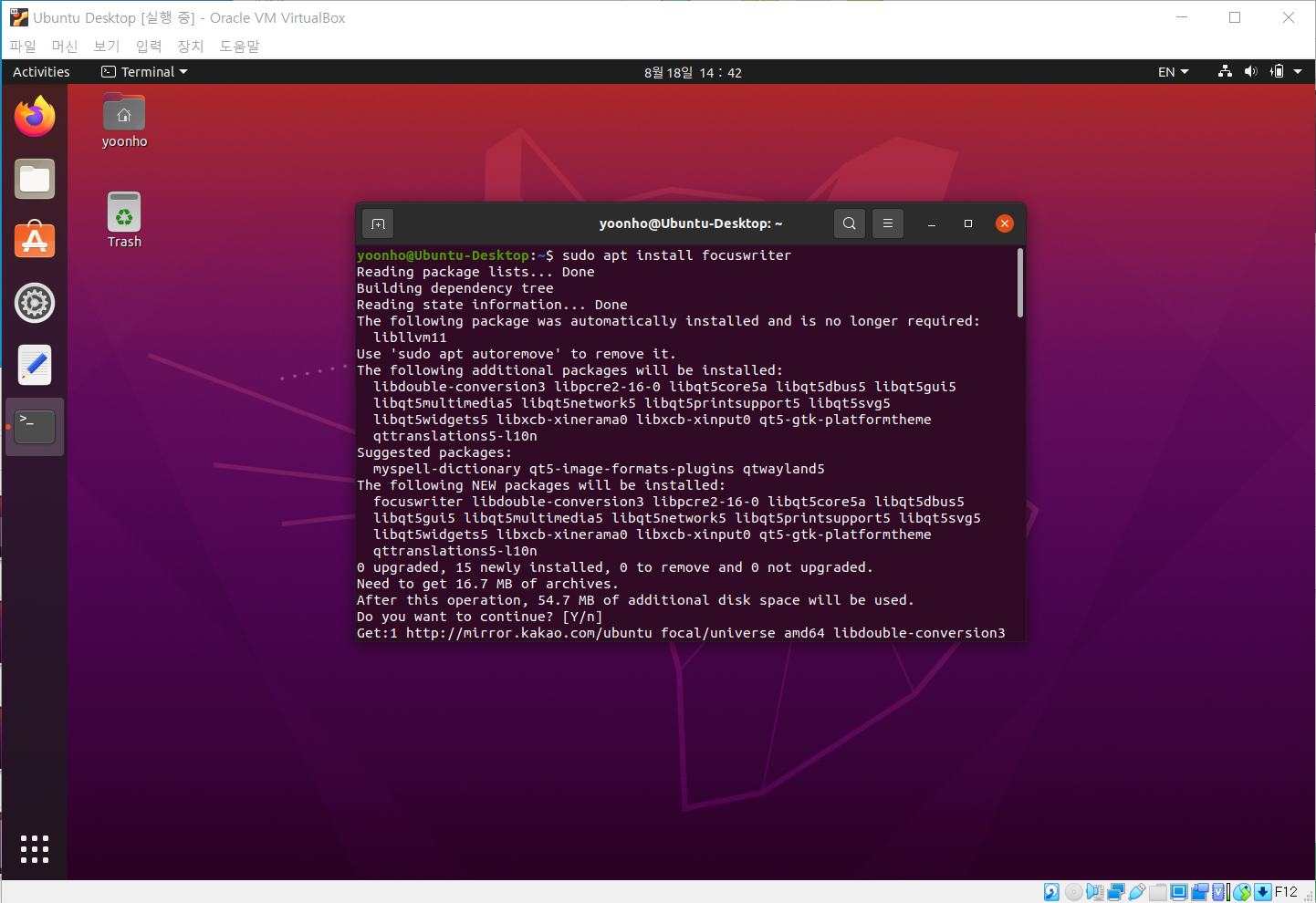 [Y/n] 은 기본값이 Y라는 뜻이므로 Continue를 위해 엔터키를 한 번 더 눌러준다.