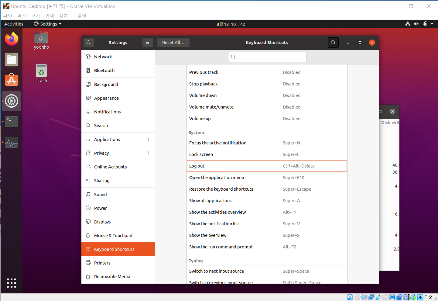 우분투 로그아웃을 위해 Ctrl+Alt+Delete 입력 시 윈도우즈의 작업관리자가 실행되어 버릴 것이다.
