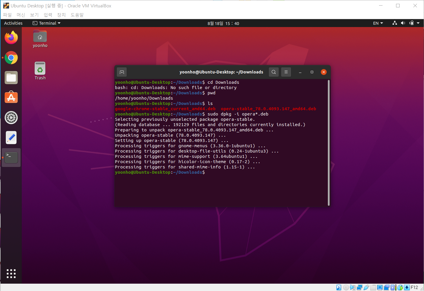 ls 명령 시에 Chrome과 Opera의 파일 두 개가 모두 보이는 모습이다.