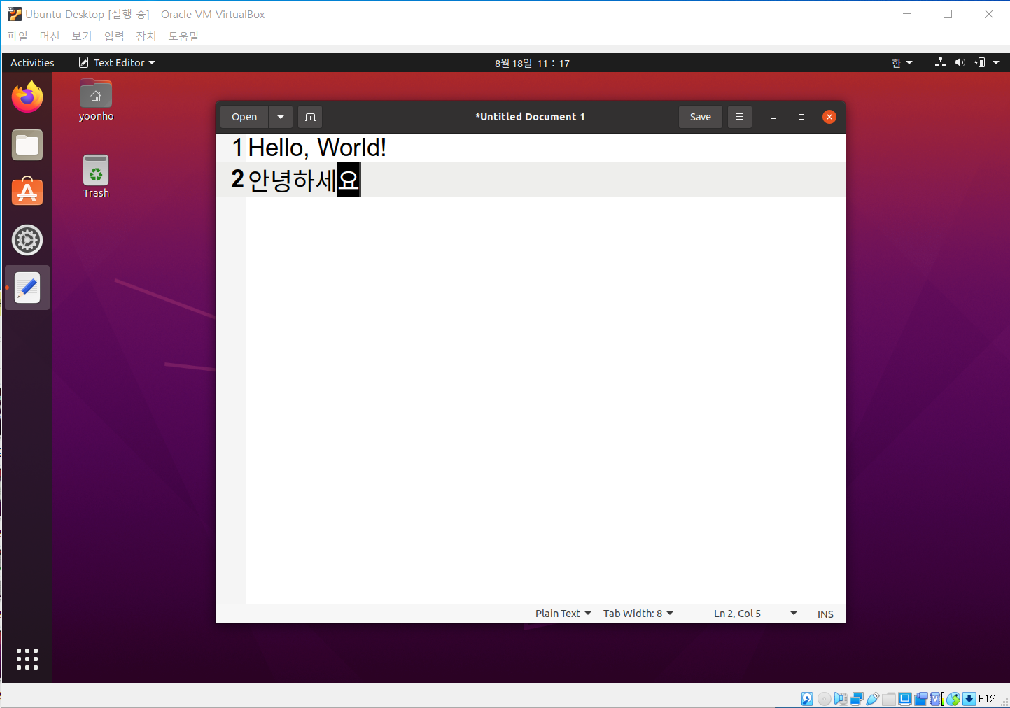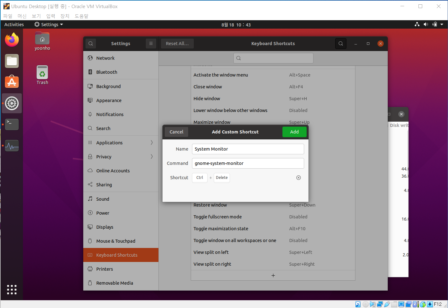 *Ubuntu에선 물론이고 HostOS에서 사용하는 단축키와도 겹치지 않도록 설정해야 한다.