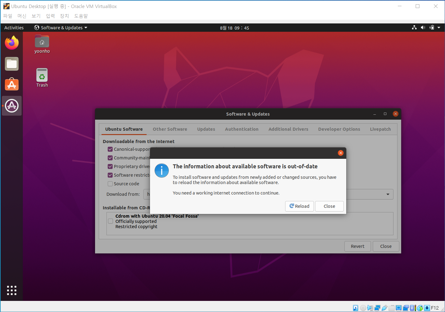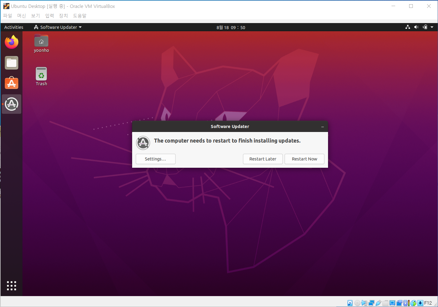 이 과정이 끝나면 아까 Software & Updates 아이콘 옆에 있던 비슷한 모양의 흑백 아이콘을 클릭한다.