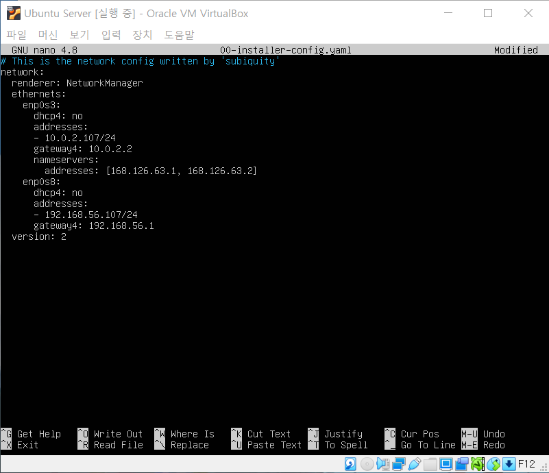 ip를 확인해보면 아까 reboot할 때 자동으로 적용이 되어 108이 된 모습이다.